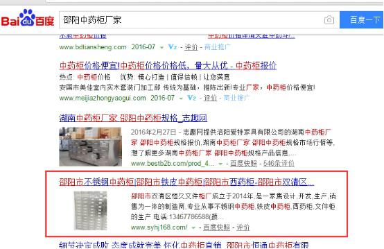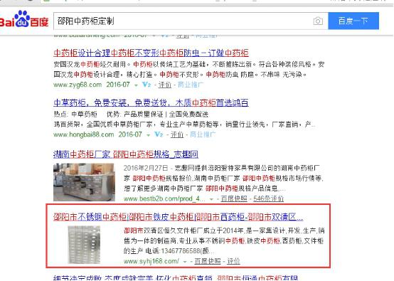 網(wǎng)站經(jīng)過(guò)一段時(shí)間對(duì)的優(yōu)化,已經(jīng)由原來(lái)的零收錄上升到14條收錄了,客戶那邊所提供的關(guān)鍵詞在快照上面有了一定的排名效果:“邵陽(yáng)中藥柜定制”“邵陽(yáng)中藥柜廠家 ”“邵陽(yáng)西藥柜”“邵陽(yáng)文件柜”等關(guān)鍵詞位居百度首頁(yè)。